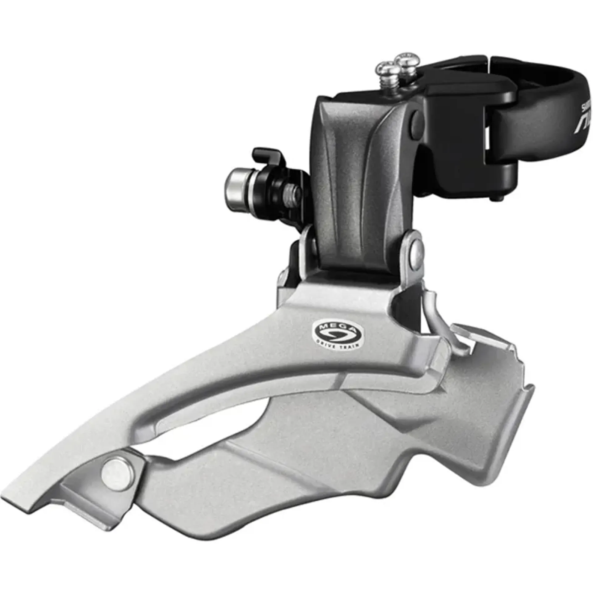Altus wide link 9-speed compatible dual pull multi-fit front derailleur for recreational off-road use.